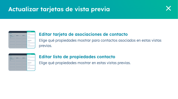 Al hacer clic en el enlace, se abrirá un cuadro emergente (pop-up). En este cuadro, selecciona la segunda opción, que es "Editar lista de propiedades de contacto". A partir de ahí, podrás modificar las propiedades que se mostrarán en tu Bandeja de entrada.