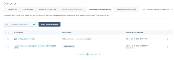 Para personalizar la vista previa de los registros de contacto, dirígete a Configuración, luego a Objeto, y selecciona Contacto. Allí encontrarás la opción "Personaliza el panel de vista previa de registros de contacto". También tienes la posibilidad de actualizar las tarjetas de vista previa que se muestran fuera del CRM.